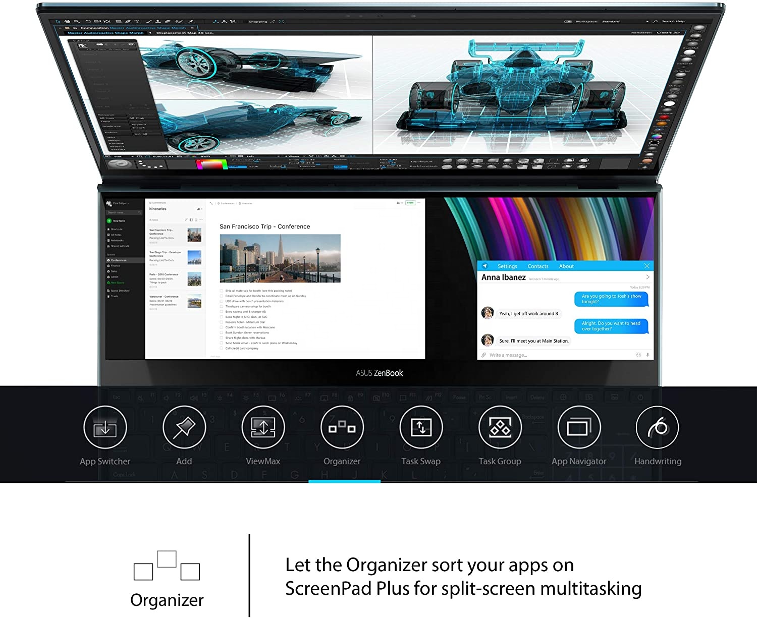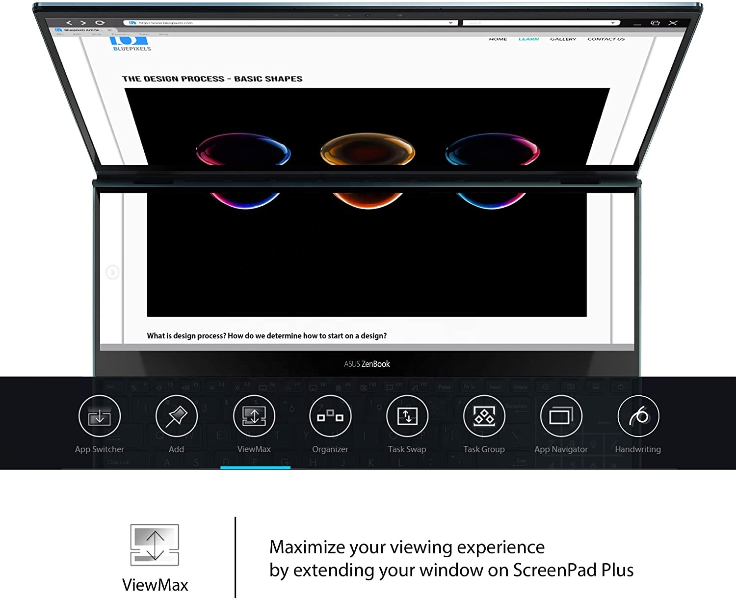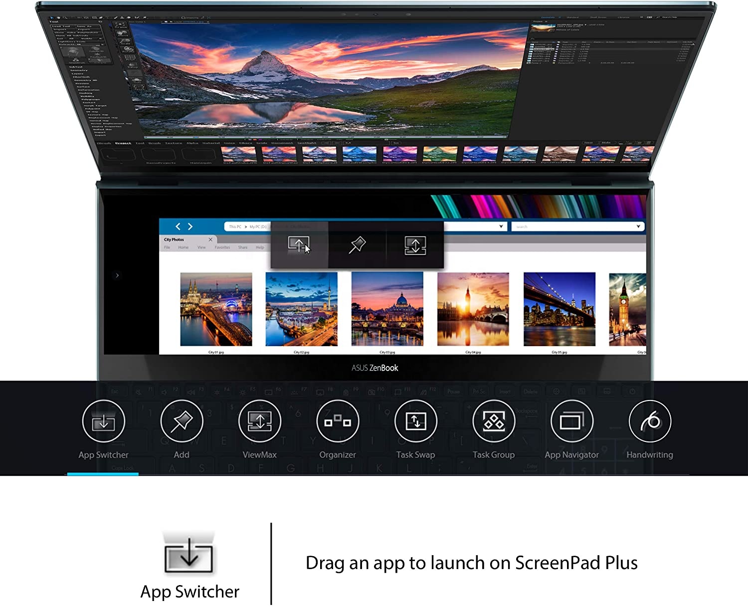 ASUS ZenBook Pro Duo UX581 with ScreenPad Plus gives you on-the-go computing like you’ve never experienced before. The 4K secondary touchscreen that works seamlessly with the main 15.6 inch 4K UHD OLED touchscreen, giving you endless ways to optimize and personalize your workflow. A series of handy built-in apps help boost your productivity. Quick Key allows one-tap automation of complex keyboard sequences and Handwriting lets you input text intuitively. Task Group lets you lock into work mode by opening multiple tasks with a single touch and now you can drag apps or in-app toolbars onto ScreenPad™ Plus to give you more room to work on the main display, wherever you are. There are also useful quick control functions such as App Switcher, ViewMax and Task Swap for intuitive interactions between the main display and ScreenPad™ Plus. With ZenBook Pro Duo and the bundled stylus, you can really let your creativity flow. Both multi-touch displays support stylus input and ScreenPad™ Plus gives you a superbly ergonomic and stable platform for writing or drawing. Take notes, sketch out your ideas, or do precision graphical editing in the most intuitive way ever. There’s also a separate palm rest in the box, which enhances the ErgoLift tilting keyboard design to give you the most comfortable typing experience ever. ZenBook Pro Duo is powered by up to a 10th Generation Intel® Core i9 eight-core processor, the latest gaming-grade NVIDIA GeForce RTX 2060 graphics, and blisteringly fast storage. This ultra powerful combination ensures that ZenBook Pro Duo takes professional-quality tasks in stride, such as multi-layer photo or video editing, 3D graphics rendering, or even game live-streaming. *The actual transfer speed of USB 3.0, 3.1, 3.2 (Gen 1 and 2), and/or Type-C will vary depending on many factors including the processing speed of the host device, file attributes and other factors related to system configuration and your operating environment.