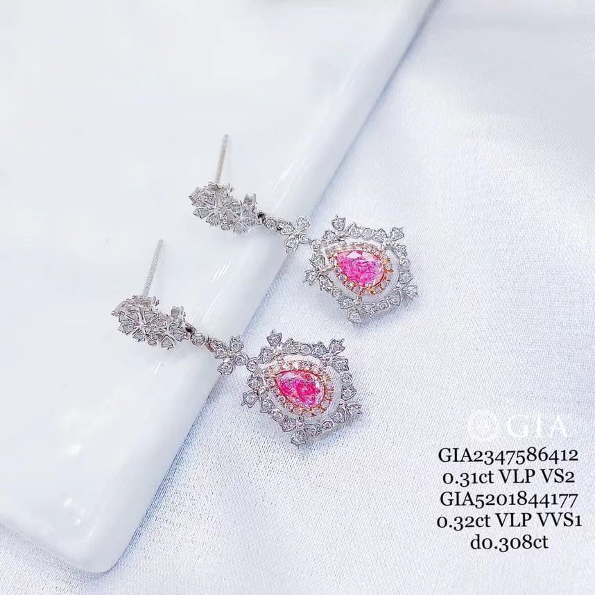 Super Gorgeous GIA Certified Fancy Pink Diamond Jewelry set 18k gold Real Pink Natural Diamond ring, necklace and earrings