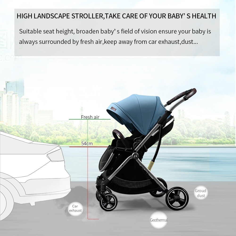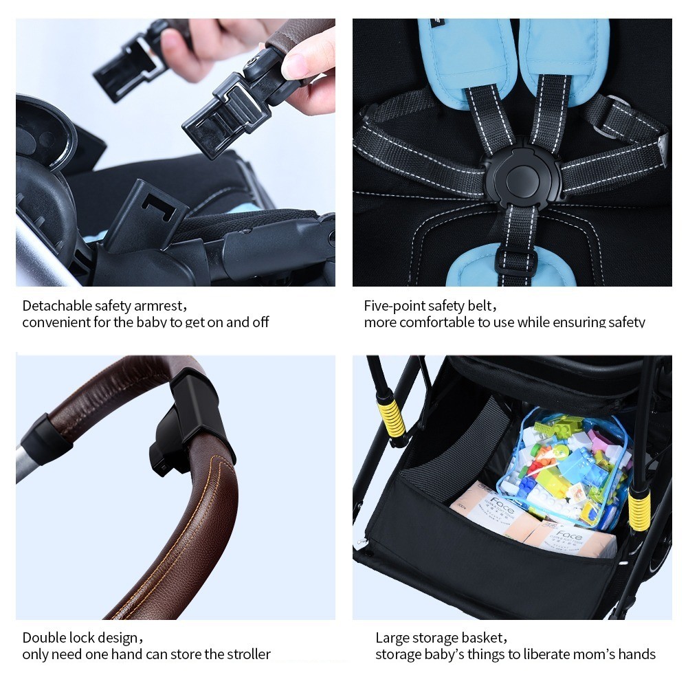 Coballe Multi-function Luxury Baby Stroller Chinese Supplier Directly Sale Leather Custom OEM Customized Grey Frame Logo Blue