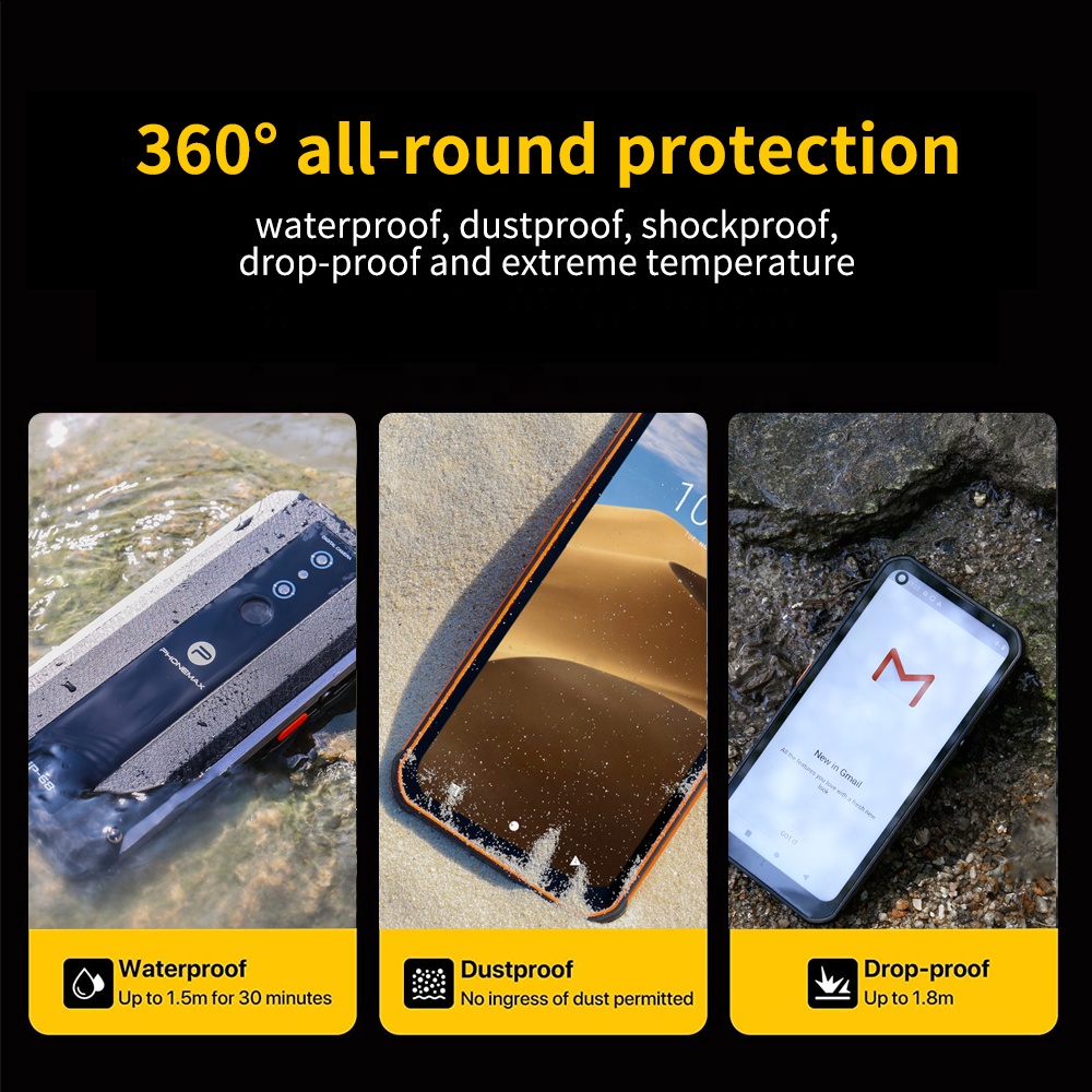 Phonemax OEM unlocked mobile 4G fingerprint NFC 8+128G 8MP+21MP Android10 6100mAh big battery shockproof ip68 rugged phones