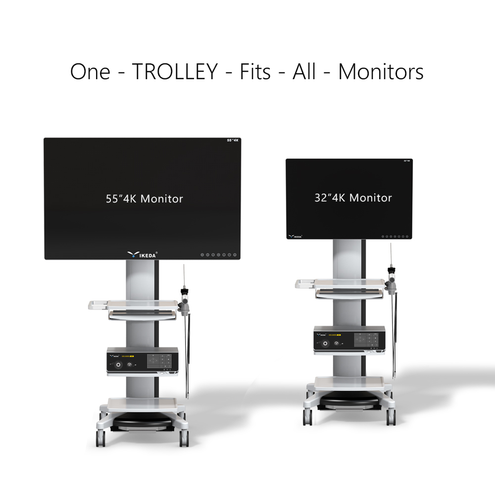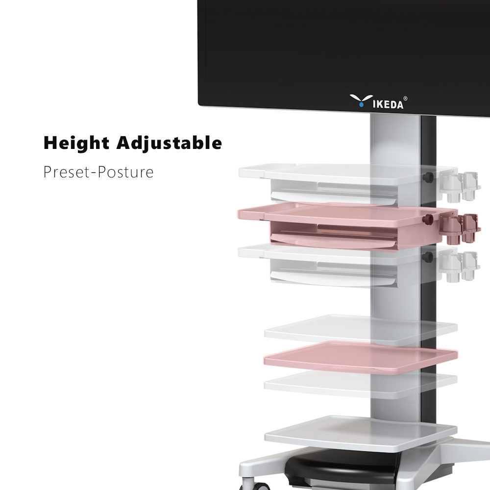 IKEDA Medical Trolley/Cart providing an easy-to-manoeuvre height-adjustable medical cart that houses most medical endoscopy systems in a variety of sizes. We have focused on an ergonomic design to release daily strains while on shift and to make it easy to move, without compromising on its robust build. With many attachments and accessories, our medical trolley and build in keyboard tray you will be sure to find the perfect fit.