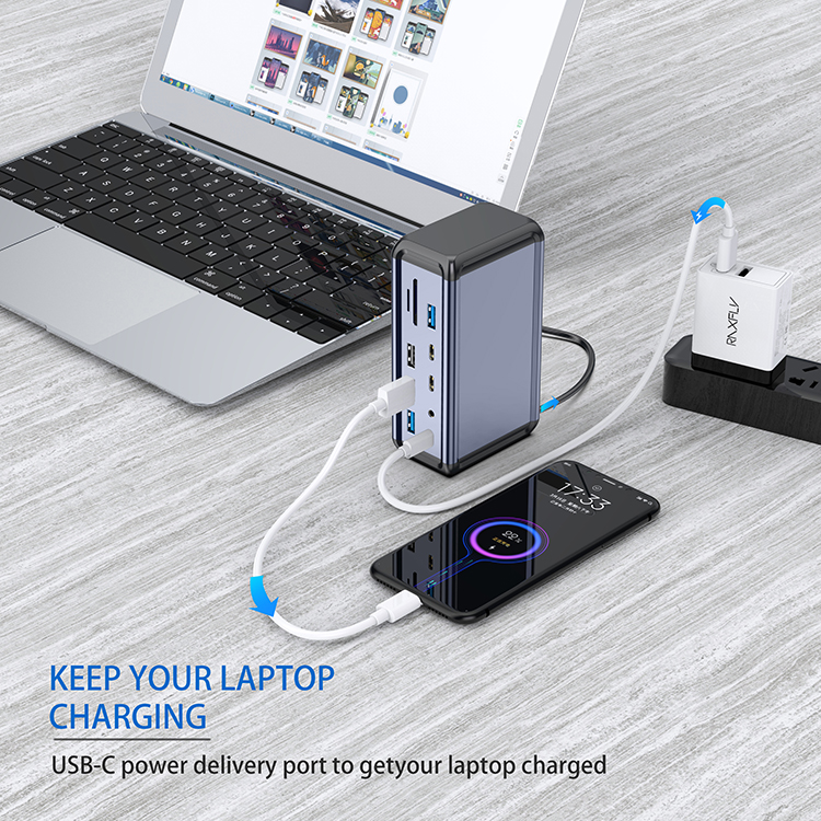 16 ports Aluminum Powered 5Gbps HUB PD Charger USB 3.2 Type C Card Reader Splitter With Power Adapter for MacBook Accessories