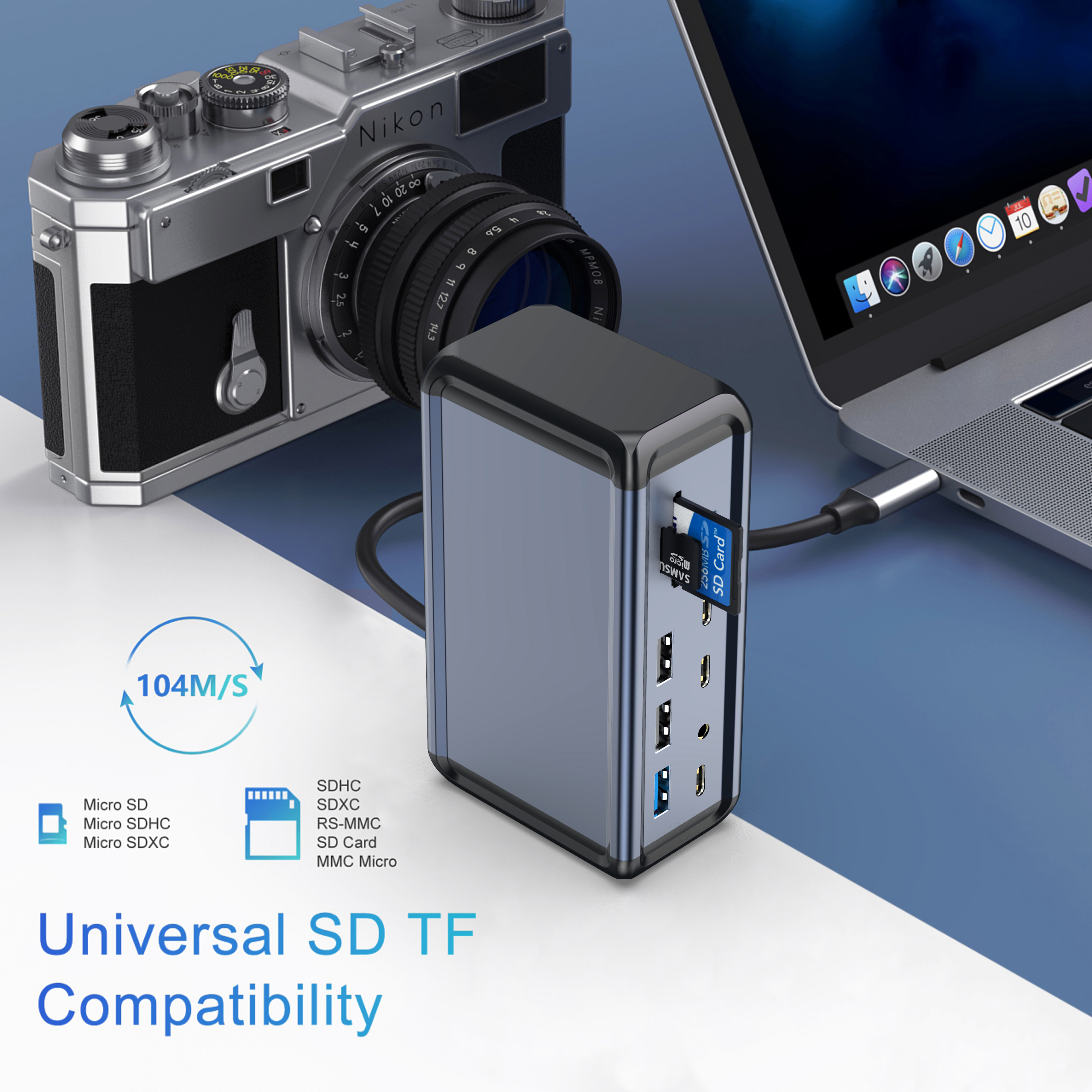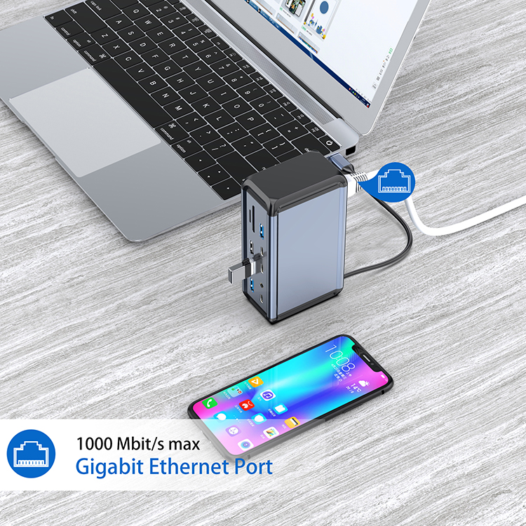 Basix 9 In 1 Travel Desk Hub For Laptop Computer Mobile Phone With Usb Hub Card Reader Docking Station Usb Type C Hub Ethernet