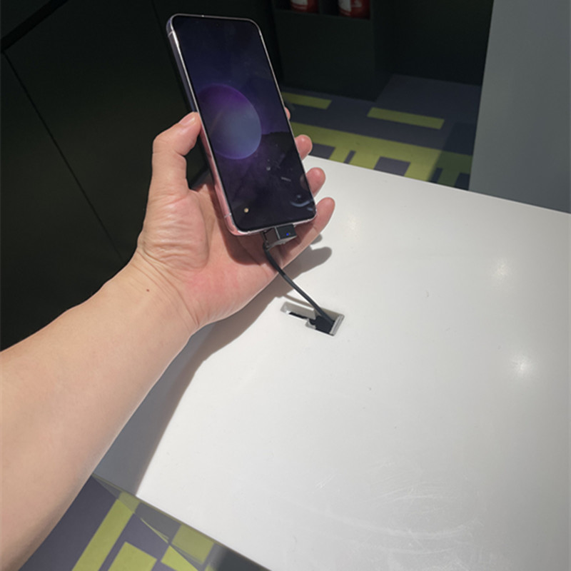[Retractable Cable] All cable inside , no messy cords or clutter, keep display clean and organized. One cable delivers it all, security, power and alarm and all in body. No any messy cords outside. It makes the displayed phone is the hero in a clean and beauty display environment.