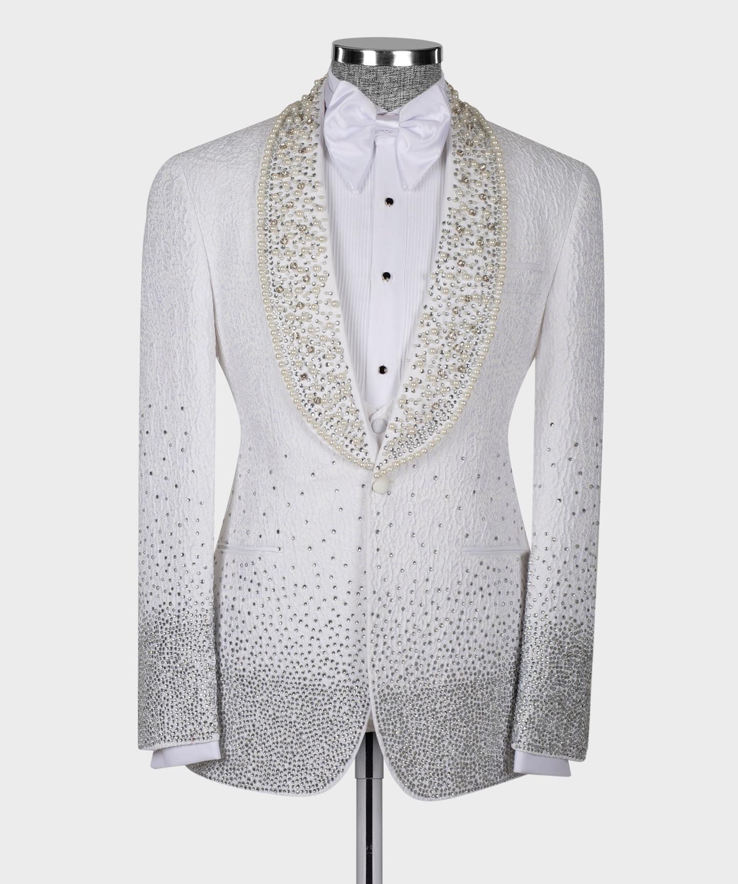 Pearl Ornament Tuxedo Groom Business Party Male Suit Slim Fit Blazer Formal Prom Clothes Men Wedding Suits