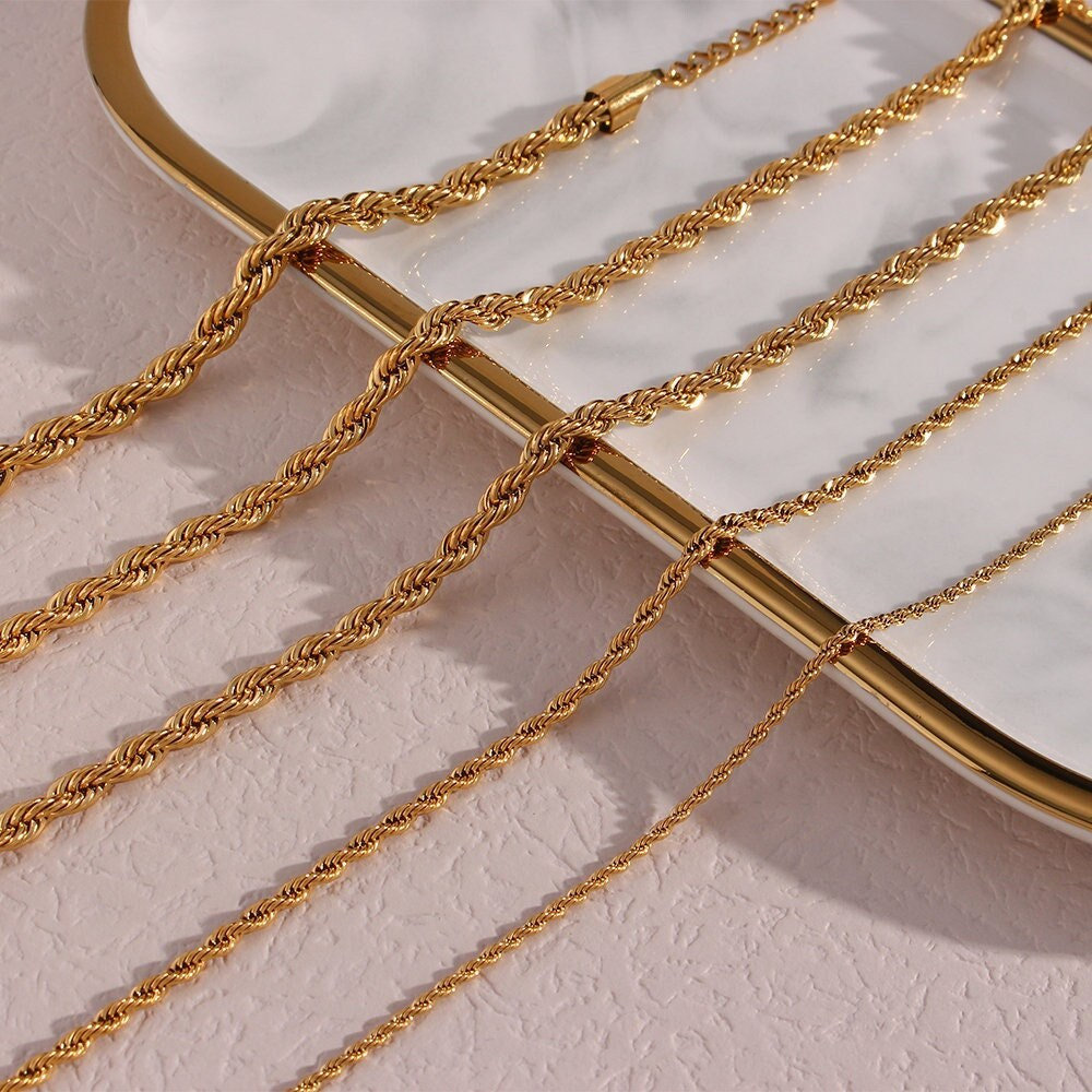 Bulk sale Pure Gold Au750 Twisted Rope Chains Necklace 1mm to 4mm 18k Gold Jewelry 18k Real Gold Rope Necklace Chain