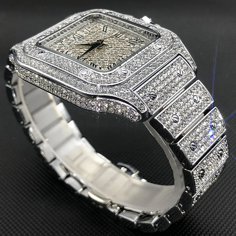 Luxury Custom Moissanite Bling Hip Hop Fully Iced Out Watches Silver Gold Color Dial Quartz Diamond Watches Men Wrist