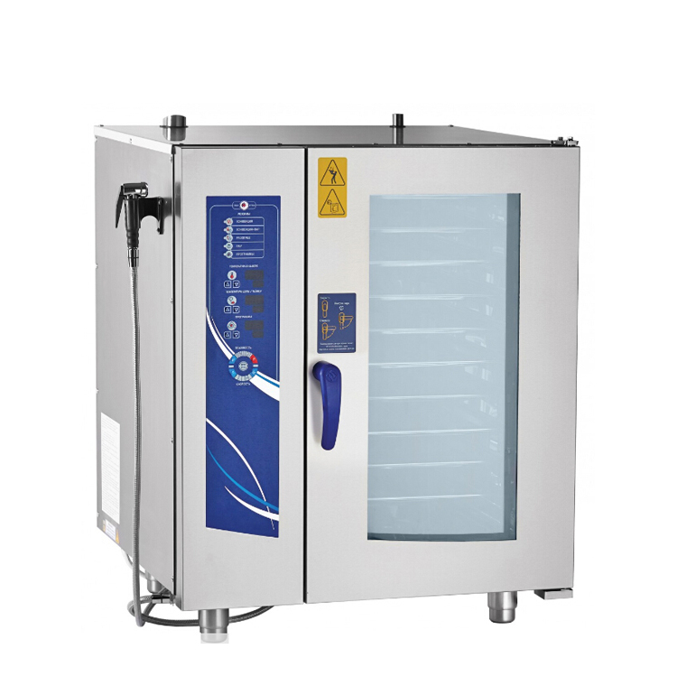 *5-speed fan, humidity regulation (from 0 to 100%), multi-point core probe, «Delta T» mode, self-diagnostic system, delayed start function, automatic washing, hand shower.