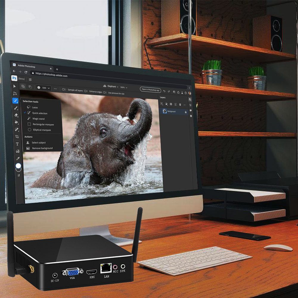 A:Our mini PC use new generation architecture In-tel CPU,seconds to office software,design software,net surfing,audio and video entertainment,run smoothly small and medium computer games.