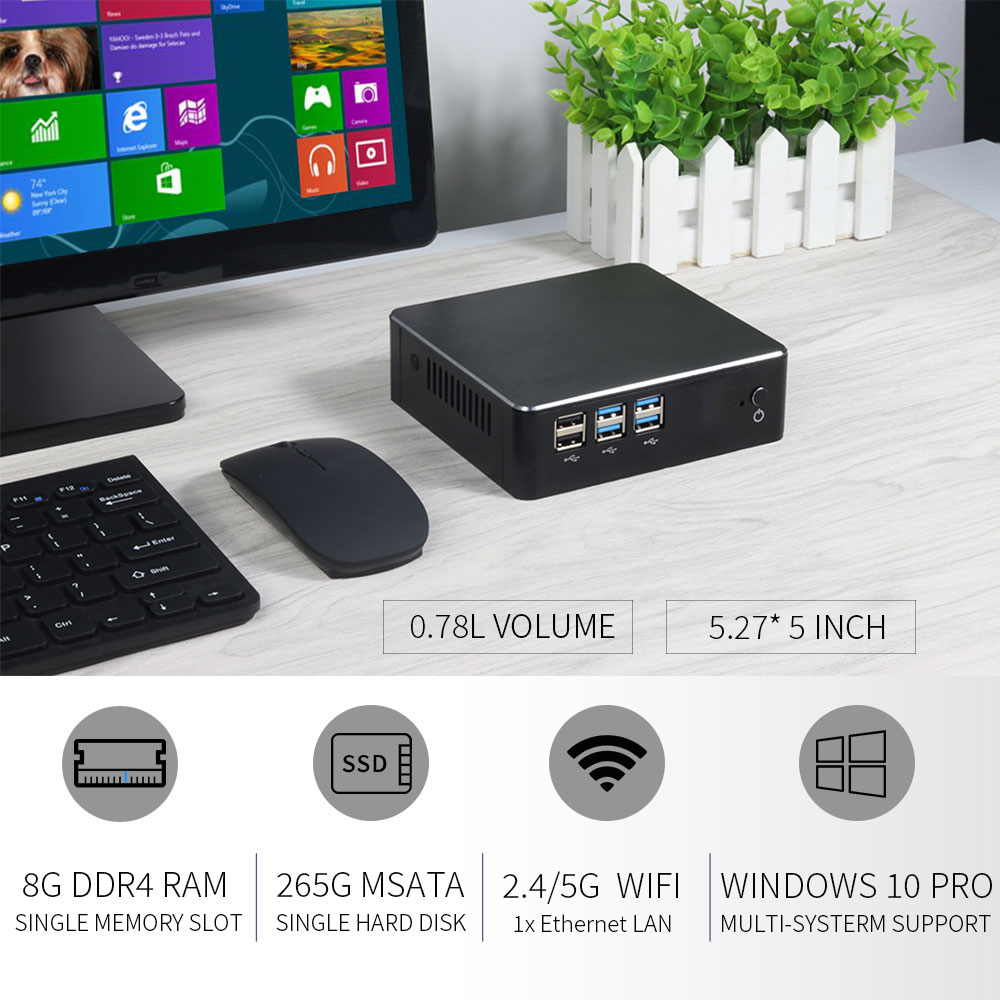 HLY i5 7267U 4200Y 4GB RAM 120GB SSD VGA WiFi office use Small Tower Desktop computer i3 i7 Mini PC for Win10