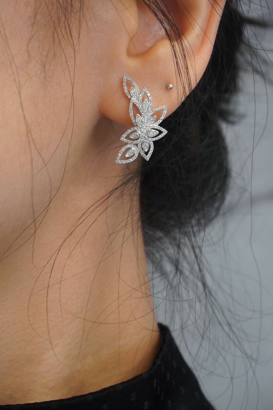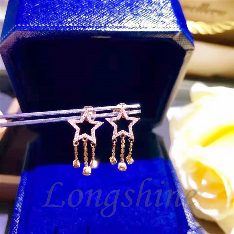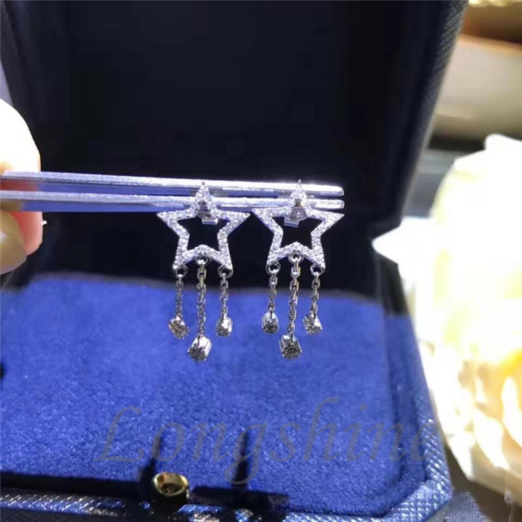 Unique Custom Jewelry Natural Diamond 18K Solid Gold Star Shape Tassel Earrings |