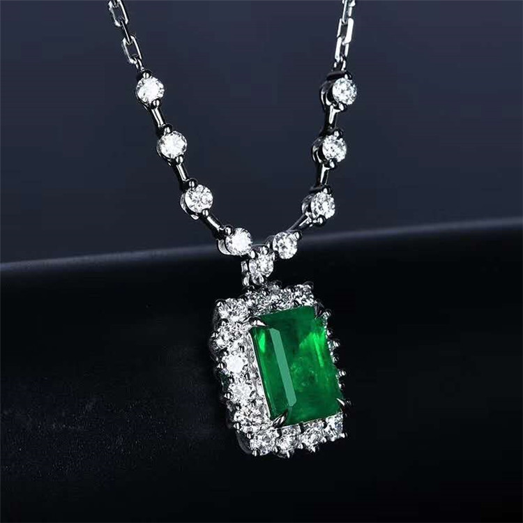 SGARIT luxurious lady party jewelry gemstone choker 18k gold 1.42ct vivid green natural emerald pendant necklace